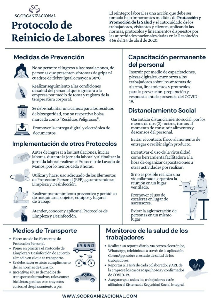 En nuestros caso, SC Organizacional ha puesto en práctica el uso activo de las redes sociales como canal de propagación de contenido que le permita a las personas orientarse respecto a hábitos de vida saludable, orden y aseo, actividades para realizar durante la cuarentena, claves para realizar el teletrabajo y estrategias de protección y prevención con las cuales puedan hacerle frente a la situación actual desde sus hogares.